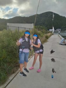 お客様に教えられるくらいまで上手になりたいものです。魚釣りセットは、常備してありますので、興味のある方は、是非予約時にお問い合わせください。